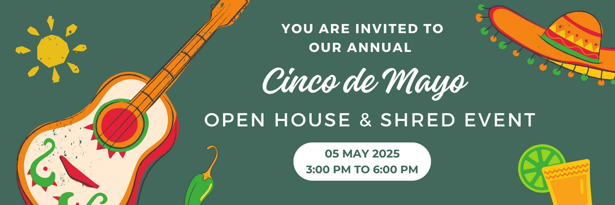 Join us on Monday, May 5th, for our annual Cinco De Mayo Open House and Shred Event!