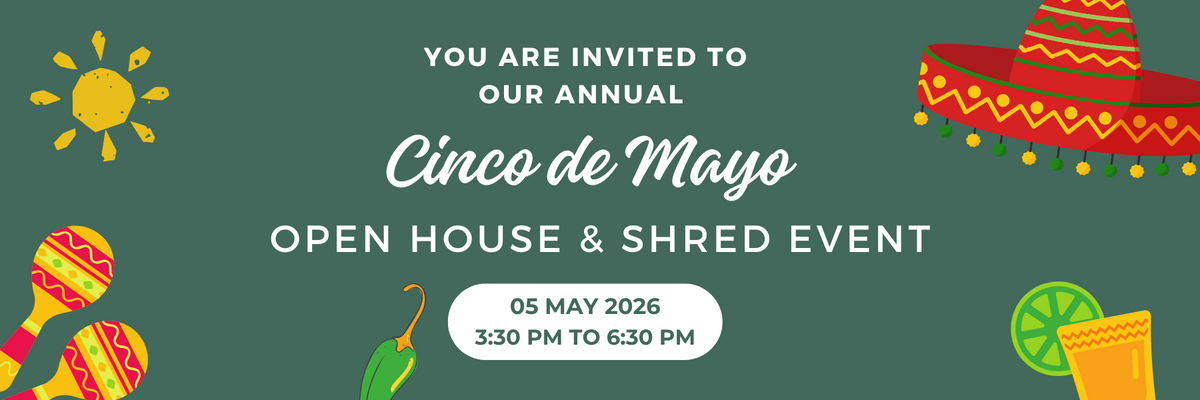 Join us on Tuesday, May 5th, for our annual Cinco De Mayo Open House and Shred Event!